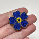 This pin is a Forget-me-not flower, which is used as a symbol for memory loss, dementia and alzheimers.
