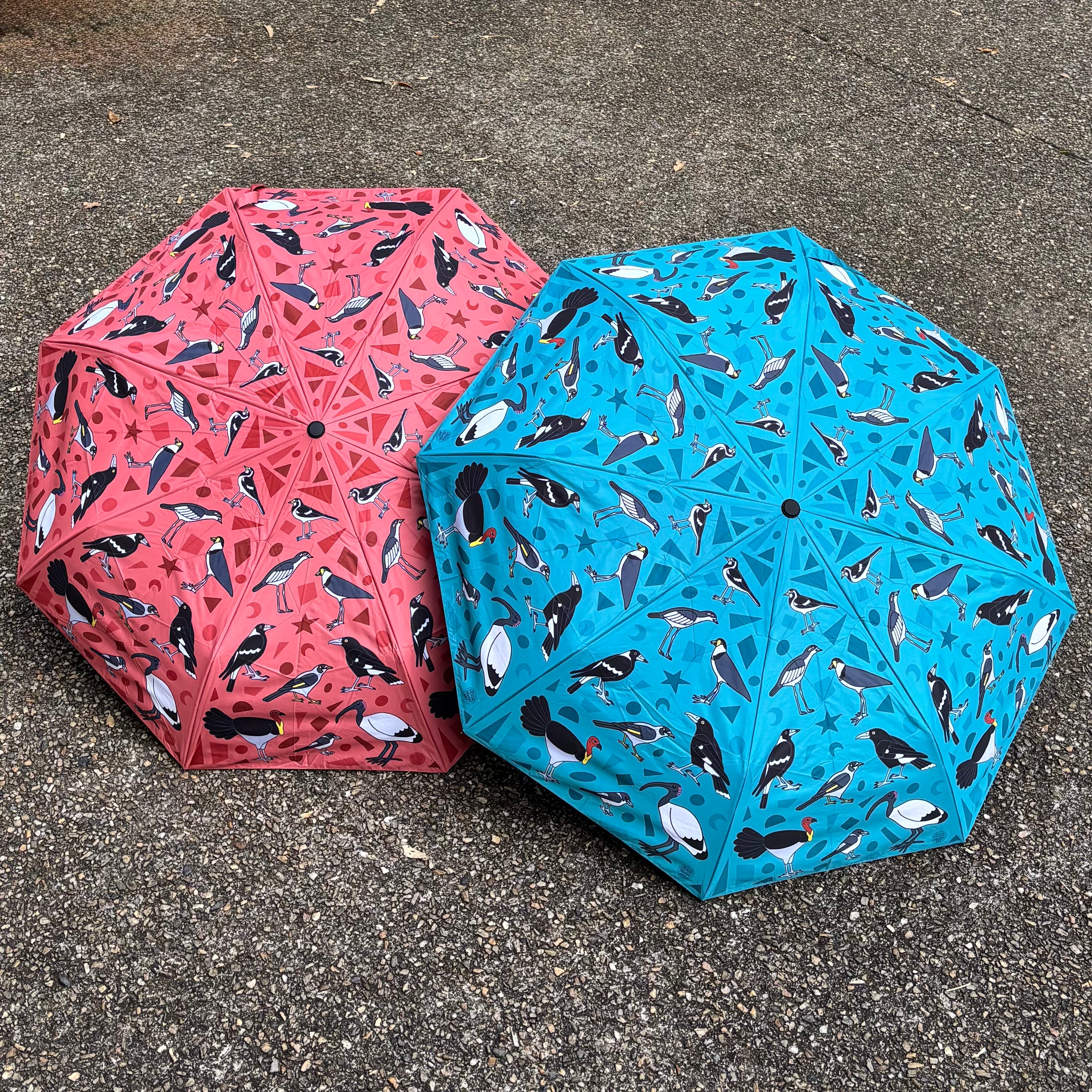 My Black and White Birds of Brisbane folding umbrella design is now UPF50+ sun protective! They come in grey and green, as well as new blue and pink versions!